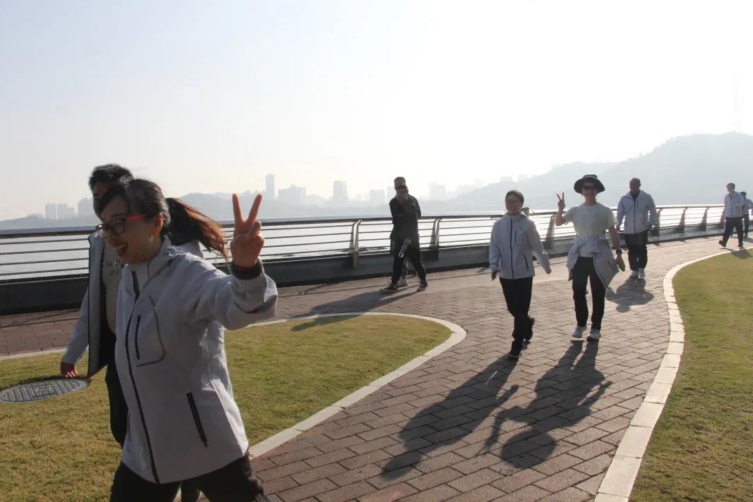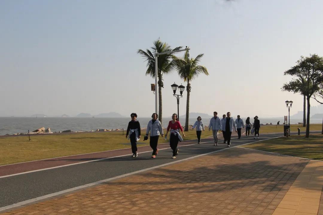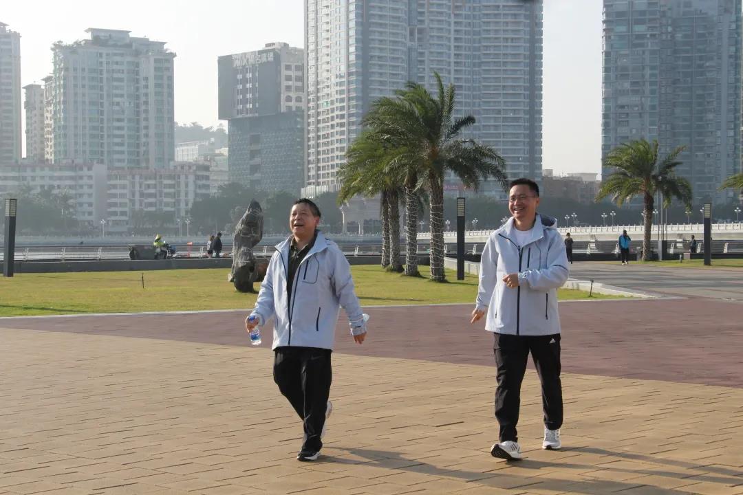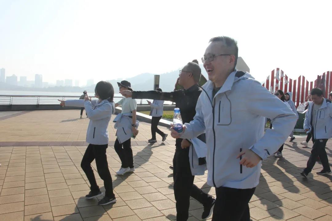 领导与职工一起欣赏沿途风景,交流思想工作,畅谈健康生活,在欢声笑语间阔步向前。