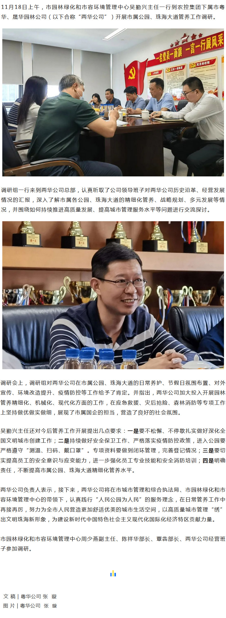 市园林绿化和市容环境管理中心吴勤兴主任一行到两华公司调研