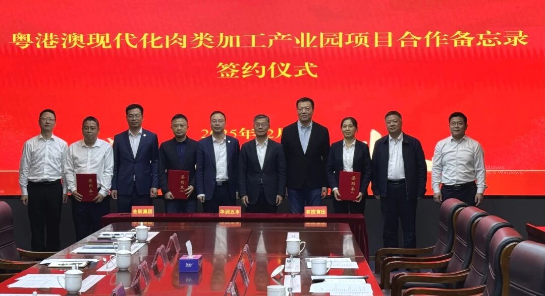 2025年12月18日下午,买球官网手机版·(中国)官方网站集团旗下广东省珠海粮油食品进出口有限公司(以下简称“食出公司”)与华润五丰(中国)投资有限公司(以下简称“华润五丰”)、珠海金航产业投资集团有限公司(以下简称“金航集团”)在珠海市金湾区市民服务中心共同签署《粤港澳现代化肉类加工产业园项目合作备忘录》,标志着三方将强强联合,携手打造一个深耕珠海、服务港澳、辐射珠西、面向全国的高标准现代化肉类供应新平台。金湾区委书记梁耀斌,华润五丰副总经理许宗煜,买球官网手机版·(中国)官方网站集团党委书记、董事长李鸿斌等出席签约仪式,金湾区政协副主席黎文星主持签约仪式。