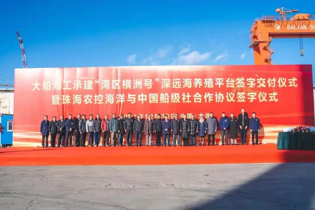 12月30日上午,买球官网手机版·(中国)官方网站集团投资建造的大型深远海养殖平台“湾区横洲号”交付签字仪式在辽宁省大连市大船海工举行。根据计划,该平台将于2022年1月4日从大连拖航回珠海,预计2022年1月15日左右拖至珠海横洲海域进行安装调试 ,3月中旬投入使用。