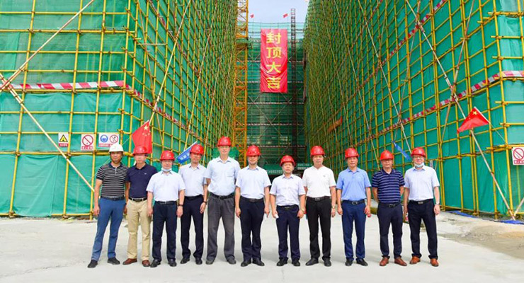 9月26日上午十时,珠海市粮食物流交易中心项目举行主体结构封顶仪式。市粮食和物资储备局、市储备粮管理中心、三溪科创小镇发展中心、市粮食行业协会、农控集团、粮食集团、建安集团相关领导以及设计、监理等参建单位人员出席仪式。