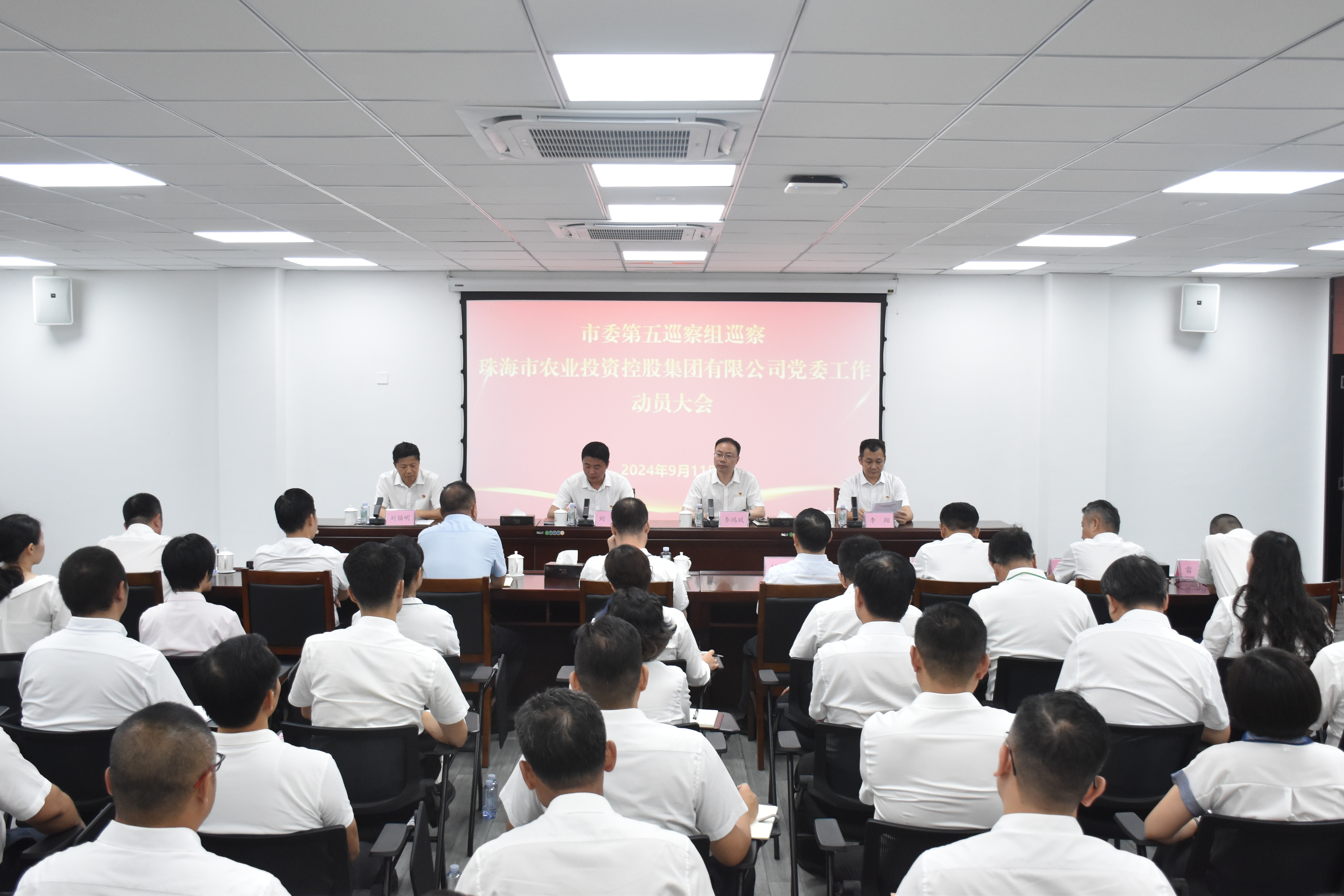 根据市委巡察工作统一部署,2024年9月11日,市委第五巡察组巡察买球官网手机版·(中国)官方网站 (以下简称“农控集团”)党委工作动员会召开。会前,市委第五巡察组组长刘震主持召开与农控集团领导班子的见面沟通会,通报了巡察有关工作安排。动员会上,刘震作了动员讲话,对做好巡察工作提出要求。农控集团党委书记、董事长李鸿斌主持会议并作表态发言。