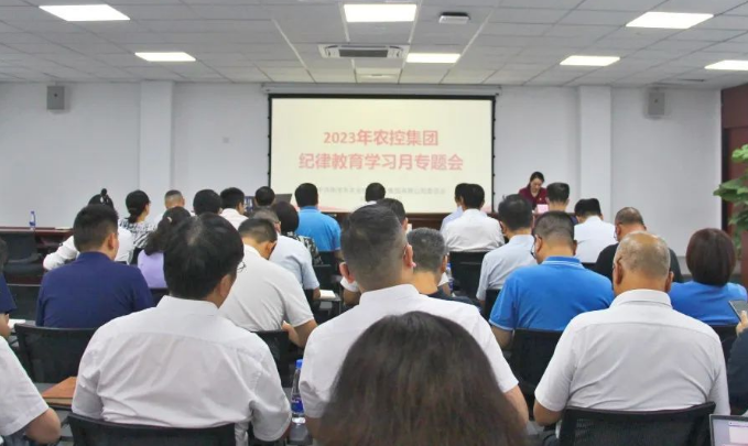 为深入学习贯彻习近平新时代中国特色社会主义思想和习近平总书记视察广东重要讲话重要指示精神,深化自我革命,全面从严治党,推动纪律教育学习月活动走深走实,9月11日,农控集团党委召开2023年纪律教育学习月专题会。集团领导班子成员、本部中层以上人员、各二级企业领导班子成员、党员代表等共计60余人参加会议。